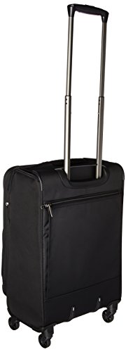Features 4 spinner wheels, neoprene top and side handles, and easy to grab bottom carry handle